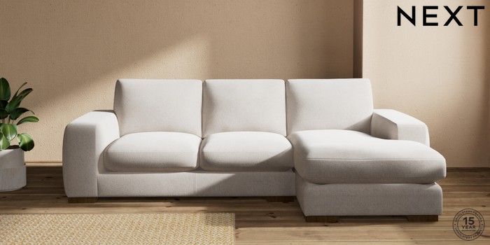 7.2.10 Houghton Deep Sit Medium Sofa Chaise - Right Hand Chunky Chenille Oyster Large Square Angle - Mid | Made Click here to use our website with more accessibility support, for example screen readers