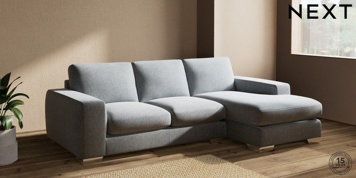 7.2.10 Houghton Deep Sit Medium Sofa Chaise - Right Hand Chunky Marl Mid Grey Large Square Angle - Chrome Metal | Made Click here to use our website with more accessibility support, for example screen readers