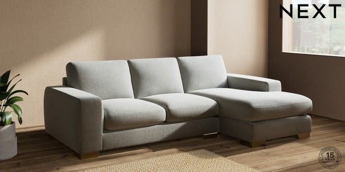 7.2.10 Houghton Deep Sit Medium Sofa Chaise - Right Hand Chunky Texture Dove Large Square Angle - Brushed Brass | Made Click here to use our website with more accessibility support, for example screen readers