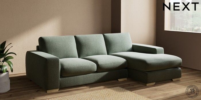 7.2.10 Houghton Deep Sit Medium Sofa Chaise - Right Hand Chunky Texture Mid Forest Green Large Square Angle - Light | Made Click here to use our website with more accessibility support, for example screen readers