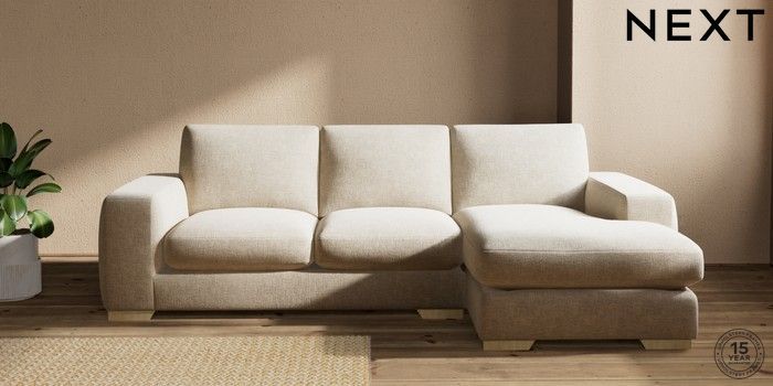 7.2.10 Houghton Deep Sit Medium Sofa Chaise - Right Hand Chunky Weave Cream Large Square Angle - Light | Made Click here to use our website with more accessibility support, for example screen readers
