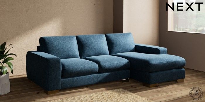 7.2.10 Houghton Deep Sit Medium Sofa Chaise - Right Hand Cotswold Chenille Dark Blue Large Square Angle - Brushed Brass | Made Click here to use our website with more accessibility support, for example screen readers