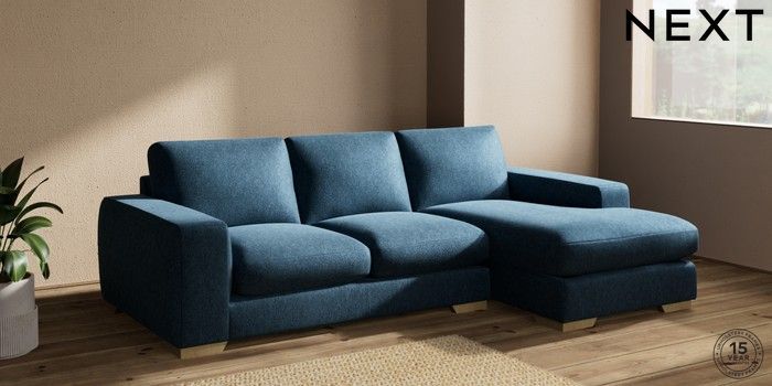 7.2.10 Houghton Deep Sit Medium Sofa Chaise - Right Hand Cotswold Chenille Dark Blue Large Square Angle - Light | Made Click here to use our website with more accessibility support, for example screen readers