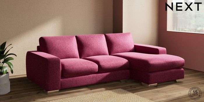 7.2.10 Houghton Deep Sit Medium Sofa Chaise - Right Hand Cotswold Chenille Dark Raspberry Pink Large Square Angle - Chrome Metal | Made Click here to use our website with more accessibility support, for example screen readers