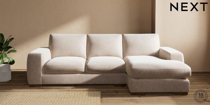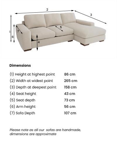 7.2.10 Houghton Deep Sit Medium Sofa Chaise - Right Hand Cotswold Chenille Light Natural Large Square Angle - Mid | Made Click here to use our website with more accessibility support, for example screen readers