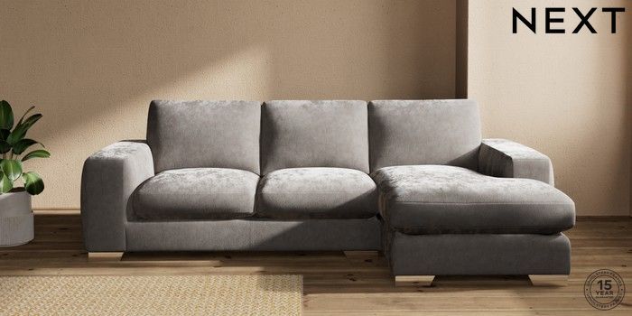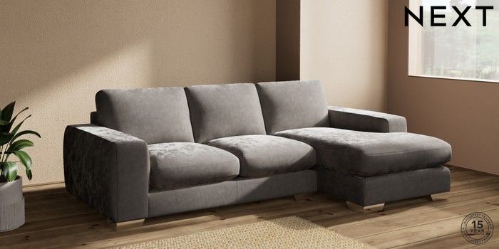 7.2.10 Houghton Deep Sit Medium Sofa Chaise - Right Hand Distressed Velour French Grey Large Square Angle - Chrome Metal | Made Click here to use our website with more accessibility support, for example screen readers