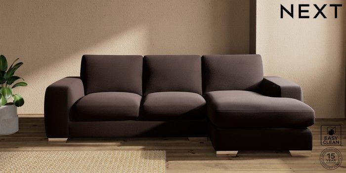 7.2.10 Houghton Deep Sit Medium Sofa Chaise - Right Hand Fine Chenille Easy Clean Chocolate Brown Large Square Angle - Chrome Metal | Made Click here to use our website with more accessibility support, for example screen readers