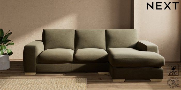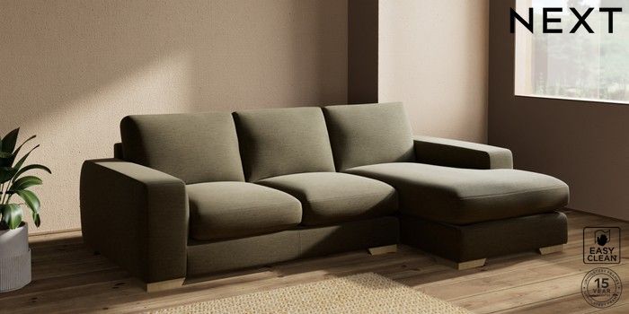 7.2.10 Houghton Deep Sit Medium Sofa Chaise - Right Hand Fine Chenille Easy Clean Dark Moss Green Large Square Angle - Light | Made Click here to use our website with more accessibility support, for example screen readers