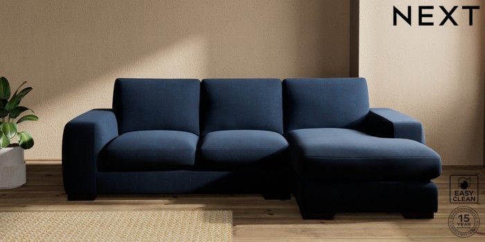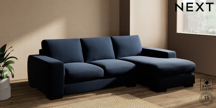 7.2.10 Houghton Deep Sit Medium Sofa Chaise - Right Hand Fine Chenille Easy Clean Dark Navy Blue Large Square Angle - Dark | Made Click here to use our website with more accessibility support, for example screen readers
