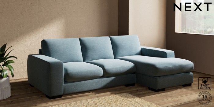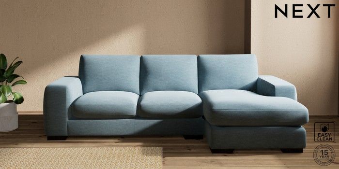 7.2.10 Houghton Deep Sit Medium Sofa Chaise - Right Hand Fine Chenille Easy Clean Mid Blue Large Square Angle - Dark | Made Click here to use our website with more accessibility support, for example screen readers