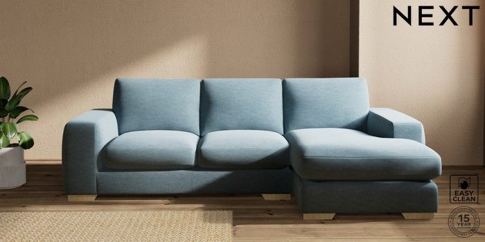 7.2.10 Houghton Deep Sit Medium Sofa Chaise - Right Hand Fine Chenille Easy Clean Mid Blue Large Square Angle - Light | Made Click here to use our website with more accessibility support, for example screen readers