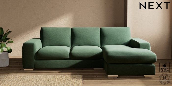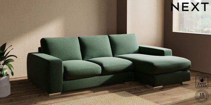 7.2.10 Houghton Deep Sit Medium Sofa Chaise - Right Hand Fine Chenille Easy Clean Mid Khaki Green Large Square Angle - Chrome Metal | Made Click here to use our website with more accessibility support, for example screen readers
