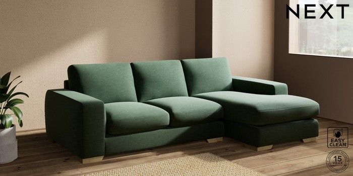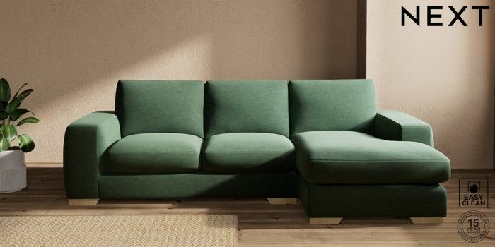 7.2.10 Houghton Deep Sit Medium Sofa Chaise - Right Hand Fine Chenille Easy Clean Mid Khaki Green Large Square Angle - Light | Made Click here to use our website with more accessibility support, for example screen readers