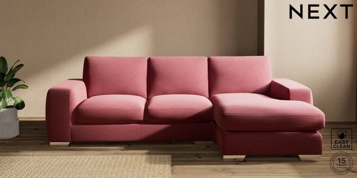 7.2.10 Houghton Deep Sit Medium Sofa Chaise - Right Hand Fine Chenille Easy Clean Mid Pink Large Square Angle - Chrome Metal | Made Click here to use our website with more accessibility support, for example screen readers