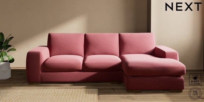 7.2.10 Houghton Deep Sit Medium Sofa Chaise - Right Hand Fine Chenille Easy Clean Mid Pink Large Square Angle - Mid | Made Click here to use our website with more accessibility support, for example screen readers