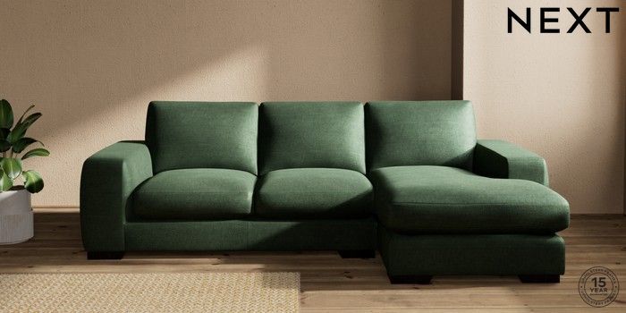 7.2.10 Houghton Deep Sit Medium Sofa Chaise - Right Hand Luxe Chenille Dark Green Large Square Angle - Dark | Made Click here to use our website with more accessibility support, for example screen readers