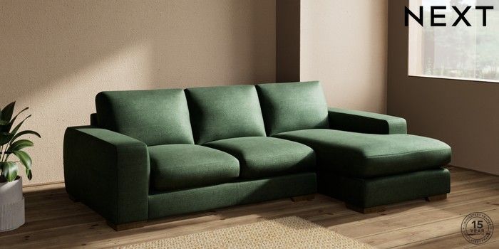 7.2.10 Houghton Deep Sit Medium Sofa Chaise - Right Hand Luxe Chenille Dark Green Large Square Angle - Mid | Made Click here to use our website with more accessibility support, for example screen readers