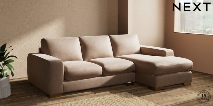 7.2.10 Houghton Deep Sit Medium Sofa Chaise - Right Hand Luxe Chenille Mid Natural Large Square Angle - Brushed Brass | Made Click here to use our website with more accessibility support, for example screen readers