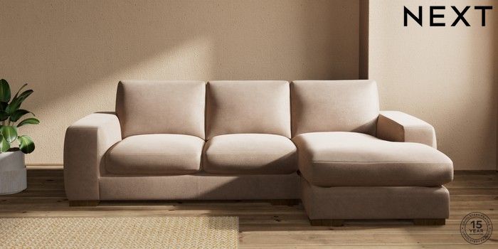 7.2.10 Houghton Deep Sit Medium Sofa Chaise - Right Hand Luxe Chenille Mid Natural Large Square Angle - Mid | Made Click here to use our website with more accessibility support, for example screen readers