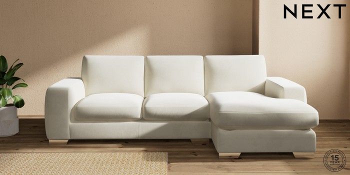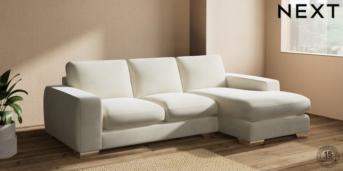 7.2.10 Houghton Deep Sit Medium Sofa Chaise - Right Hand Luxe Chenille Oyster Large Square Angle - Chrome Metal | Made Click here to use our website with more accessibility support, for example screen readers