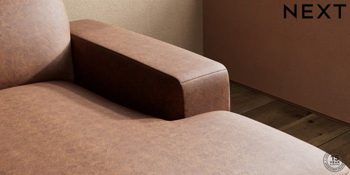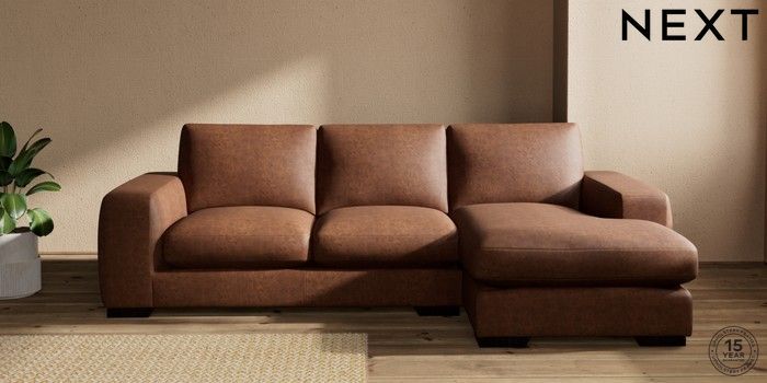 7.2.10 Houghton Deep Sit Medium Sofa Chaise - Right Hand Monza Faux Leather Easy Clean Chestnut Brown Large Square Angle - Dark | Made Click here to use our website with more accessibility support, for example screen readers