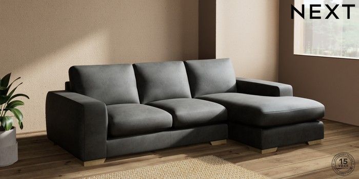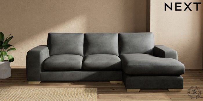 7.2.10 Houghton Deep Sit Medium Sofa Chaise - Right Hand Monza Faux Leather Easy Clean Dark Grey Large Square Angle - Light | Made Click here to use our website with more accessibility support, for example screen readers