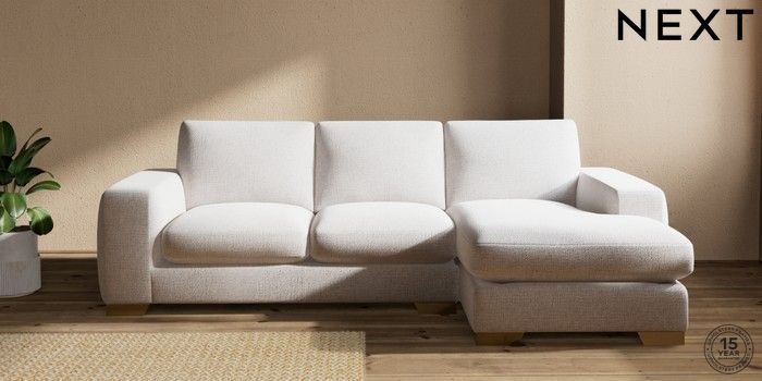 7.2.10 Houghton Deep Sit Medium Sofa Chaise - Right Hand Multi Weave Oyster Large Square Angle - Brushed Brass | Made Click here to use our website with more accessibility support, for example screen readers