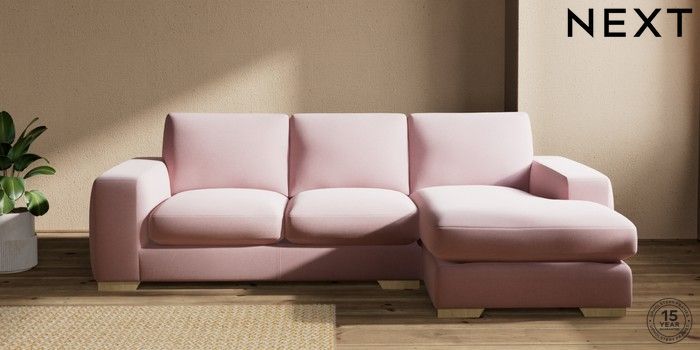 7.2.10 Houghton Deep Sit Medium Sofa Chaise - Right Hand Natural Mix Light Rose Pink Large Square Angle - Light | Made Click here to use our website with more accessibility support, for example screen readers