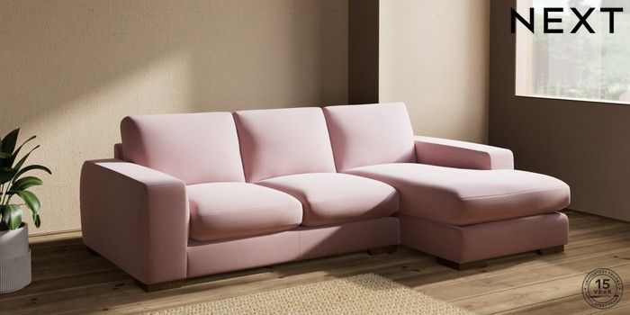 7.2.10 Houghton Deep Sit Medium Sofa Chaise - Right Hand Natural Mix Light Rose Pink Large Square Angle - Mid | Made Click here to use our website with more accessibility support, for example screen readers
