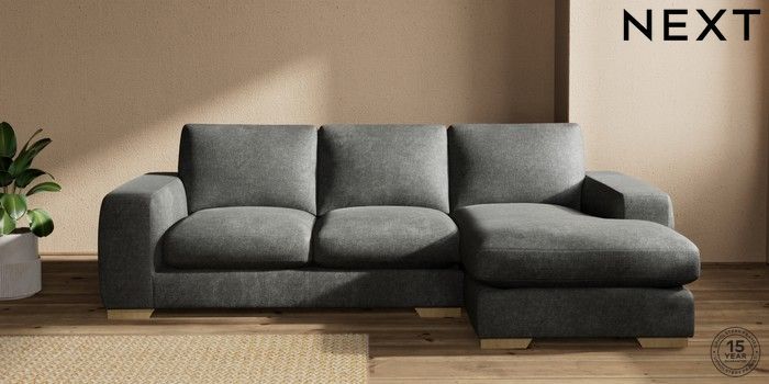 7.2.10 Houghton Deep Sit Medium Sofa Chaise - Right Hand Plush Chenille Dark Grey Large Square Angle - Light | Made Click here to use our website with more accessibility support, for example screen readers