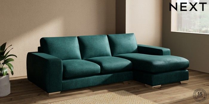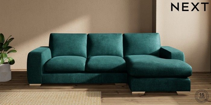 7.2.10 Houghton Deep Sit Medium Sofa Chaise - Right Hand Plush Chenille Dark Teal Green Large Square Angle - Chrome Metal | Made Click here to use our website with more accessibility support, for example screen readers