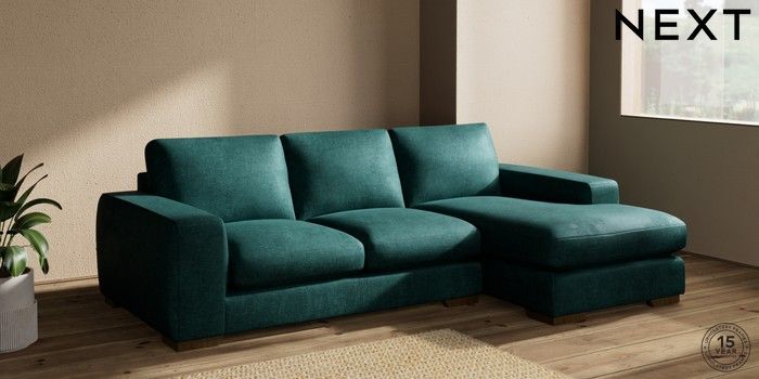 7.2.10 Houghton Deep Sit Medium Sofa Chaise - Right Hand Plush Chenille Dark Teal Green Large Square Angle - Mid | Made Click here to use our website with more accessibility support, for example screen readers