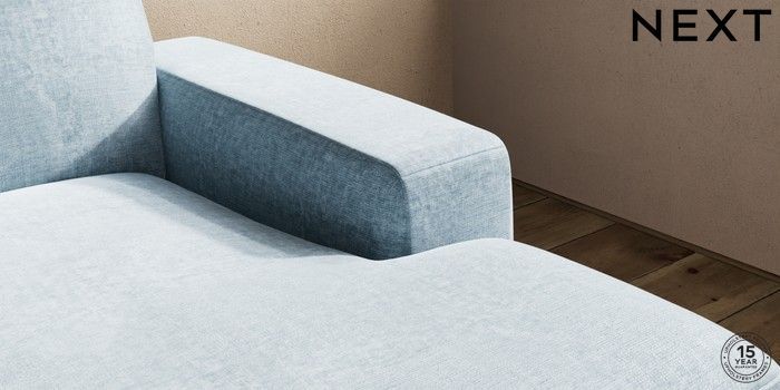 7.2.10 Houghton Deep Sit Medium Sofa Chaise - Right Hand Plush Chenille Light Blue Large Square Angle - Gunmetal | Made Click here to use our website with more accessibility support, for example screen readers