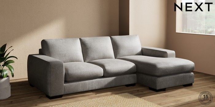 7.2.10 Houghton Deep Sit Medium Sofa Chaise - Right Hand Plush Chenille Light Grey Large Square Angle - Dark | Made Click here to use our website with more accessibility support, for example screen readers