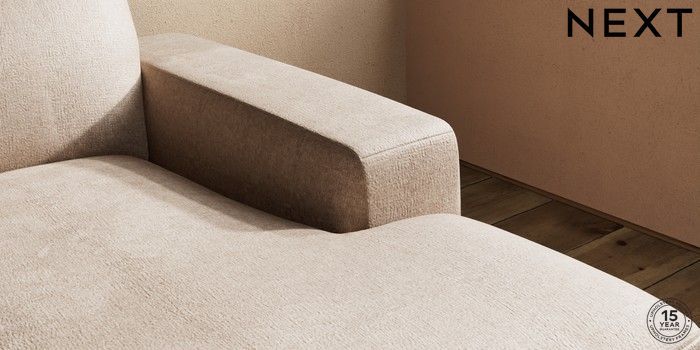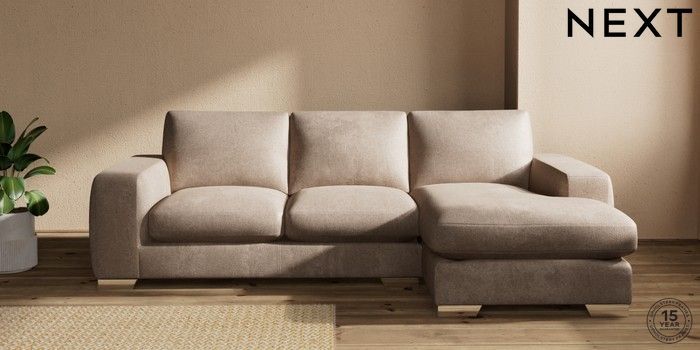 7.2.10 Houghton Deep Sit Medium Sofa Chaise - Right Hand Plush Chenille Mid Natural Large Square Angle - Chrome Metal | Made Click here to use our website with more accessibility support, for example screen readers