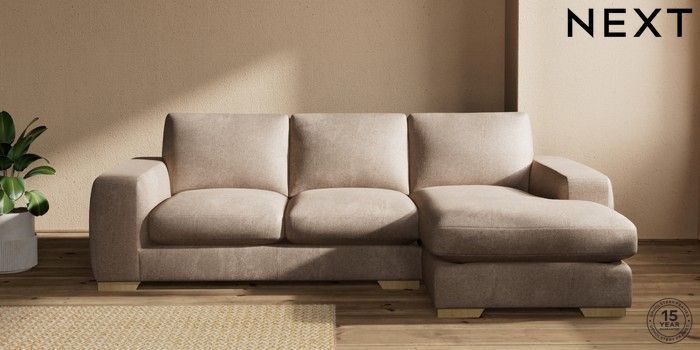 7.2.10 Houghton Deep Sit Medium Sofa Chaise - Right Hand Plush Chenille Mid Natural Large Square Angle - Light | Made Click here to use our website with more accessibility support, for example screen readers