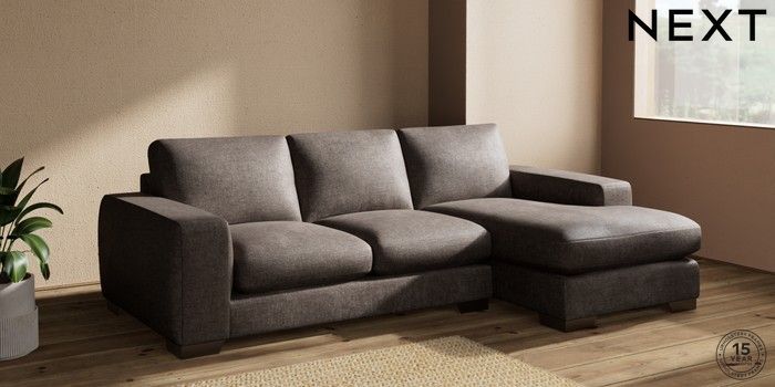 7.2.10 Houghton Deep Sit Medium Sofa Chaise - Right Hand Plush Chenille Mink Brown Large Square Angle - Gunmetal | Made Click here to use our website with more accessibility support, for example screen readers