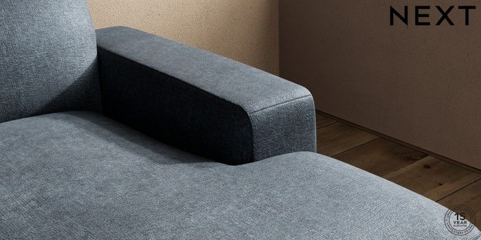7.2.10 Houghton Deep Sit Medium Sofa Chaise - Right Hand Plush Chenille Slate Blue Large Square Angle - Dark | Made Click here to use our website with more accessibility support, for example screen readers