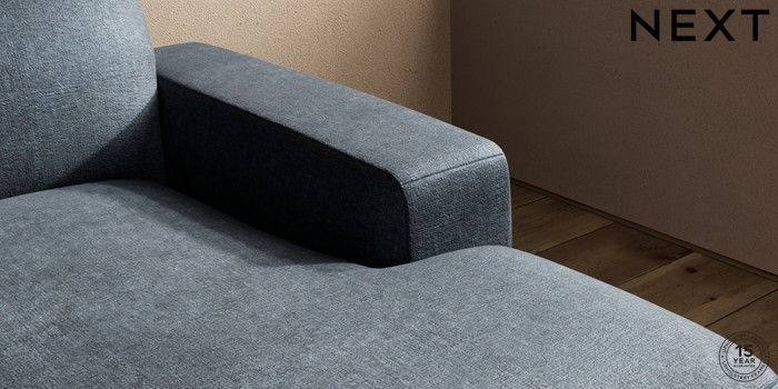 7.2.10 Houghton Deep Sit Medium Sofa Chaise - Right Hand Plush Chenille Slate Blue Large Square Angle - Light | Made Click here to use our website with more accessibility support, for example screen readers