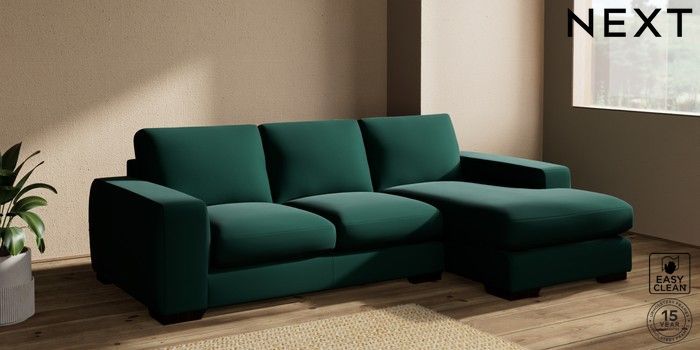 7.2.10 Houghton Deep Sit Medium Sofa Chaise - Right Hand Plush Velvet Easy Clean Bottle Green Large Square Angle - Dark | Made Click here to use our website with more accessibility support, for example screen readers