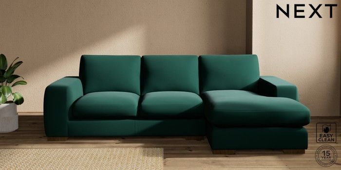 7.2.10 Houghton Deep Sit Medium Sofa Chaise - Right Hand Plush Velvet Easy Clean Bottle Green Large Square Angle - Mid | Made Click here to use our website with more accessibility support, for example screen readers