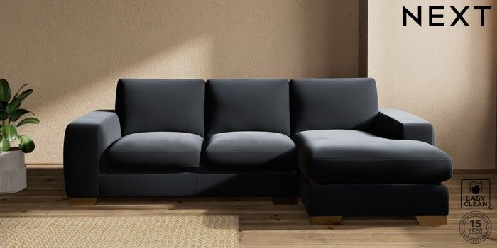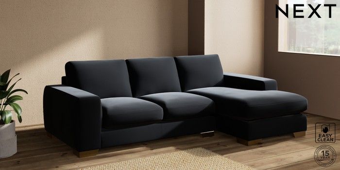 7.2.10 Houghton Deep Sit Medium Sofa Chaise - Right Hand Plush Velvet Easy Clean Charcoal Grey Large Square Angle - Brushed Brass | Made Click here to use our website with more accessibility support, for example screen readers