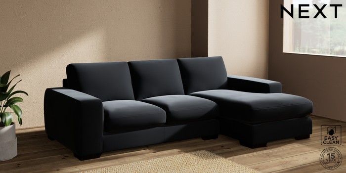 7.2.10 Houghton Deep Sit Medium Sofa Chaise - Right Hand Plush Velvet Easy Clean Charcoal Grey Large Square Angle - Dark | Made Click here to use our website with more accessibility support, for example screen readers