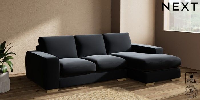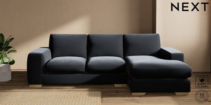 7.2.10 Houghton Deep Sit Medium Sofa Chaise - Right Hand Plush Velvet Easy Clean Charcoal Grey Large Square Angle - Light | Made Click here to use our website with more accessibility support, for example screen readers