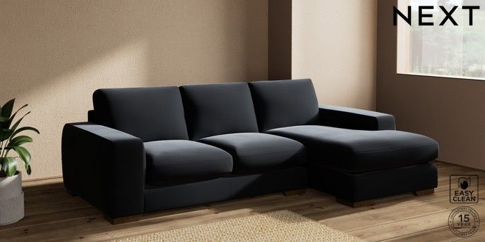 7.2.10 Houghton Deep Sit Medium Sofa Chaise - Right Hand Plush Velvet Easy Clean Charcoal Grey Large Square Angle - Mid | Made Click here to use our website with more accessibility support, for example screen readers