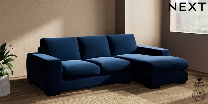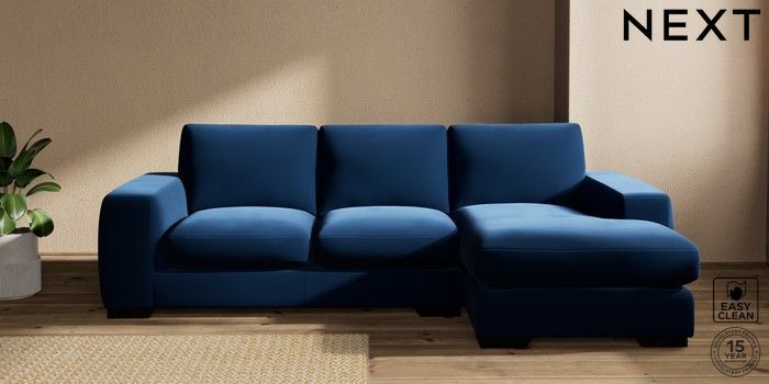 7.2.10 Houghton Deep Sit Medium Sofa Chaise - Right Hand Plush Velvet Easy Clean Navy Blue Large Square Angle - Dark | Made Click here to use our website with more accessibility support, for example screen readers