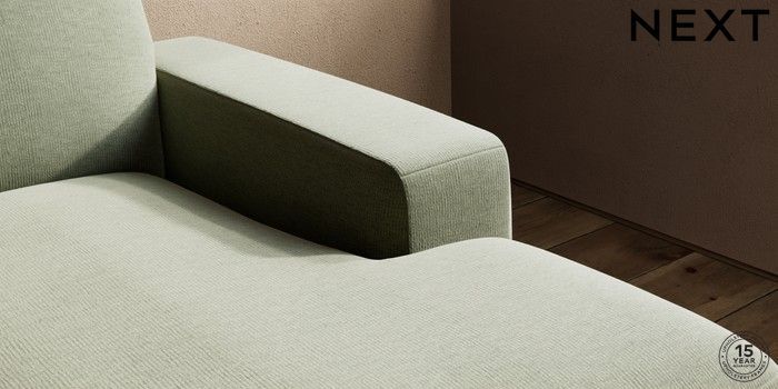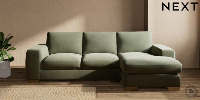 7.2.10 Houghton Deep Sit Medium Sofa Chaise - Right Hand Ripple Chenille Mid Moss Green Large Square Angle - Brushed Brass | Made Click here to use our website with more accessibility support, for example screen readers