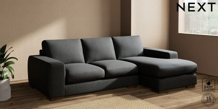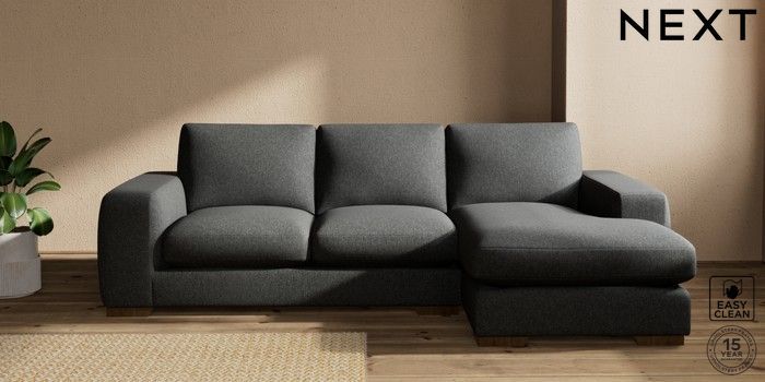 7.2.10 Houghton Deep Sit Medium Sofa Chaise - Right Hand Tweedy Blend Easy Clean Charcoal Grey Large Square Angle - Mid | Made Click here to use our website with more accessibility support, for example screen readers