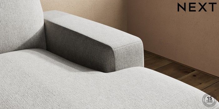 7.2.10 Houghton Deep Sit Medium Sofa Chaise - Right Hand Tweedy Chenille Mid Grey Large Square Angle - Chrome Metal | Made Click here to use our website with more accessibility support, for example screen readers
