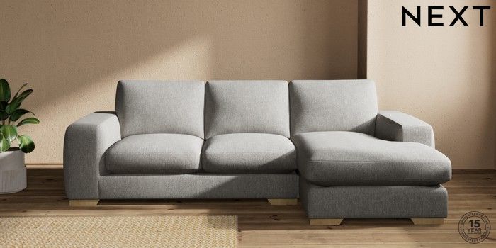 7.2.10 Houghton Deep Sit Medium Sofa Chaise - Right Hand Tweedy Chenille Mid Grey Large Square Angle - Light | Made Click here to use our website with more accessibility support, for example screen readers